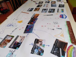 La partie créative leur a permis d’exprimer les premières formes d’émotions. Cette partie se veut très importante afin de permettre à celles et ceux de se libérer et d’exprimer leurs craintes, colères, frustrations, peurs…de le faire, en toute bienveillance.
